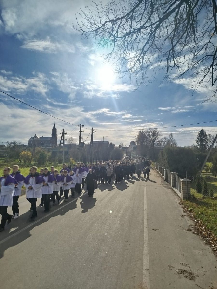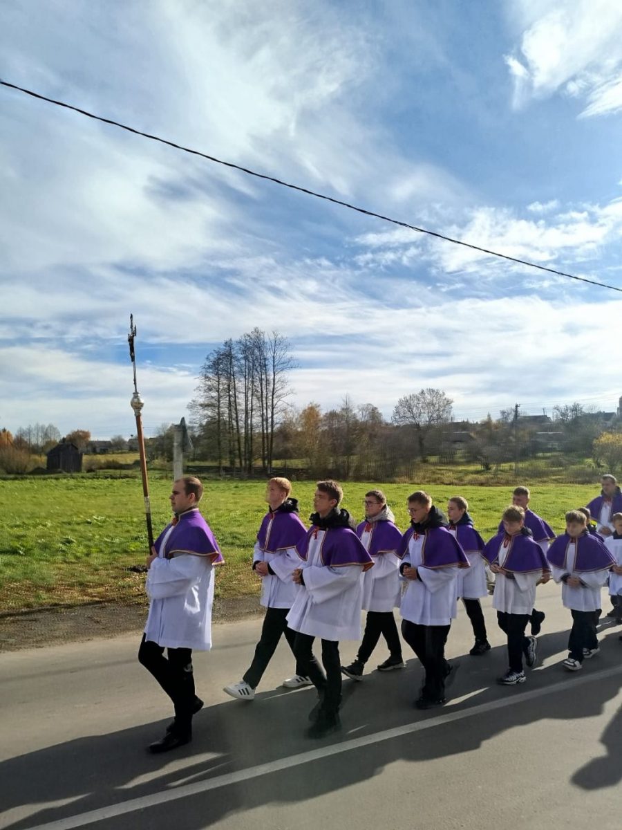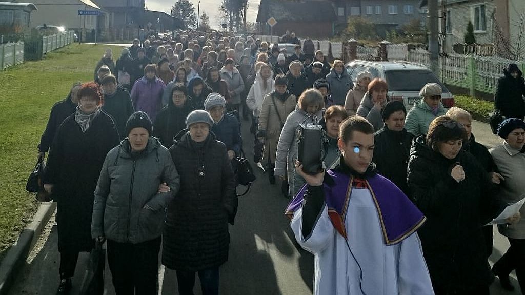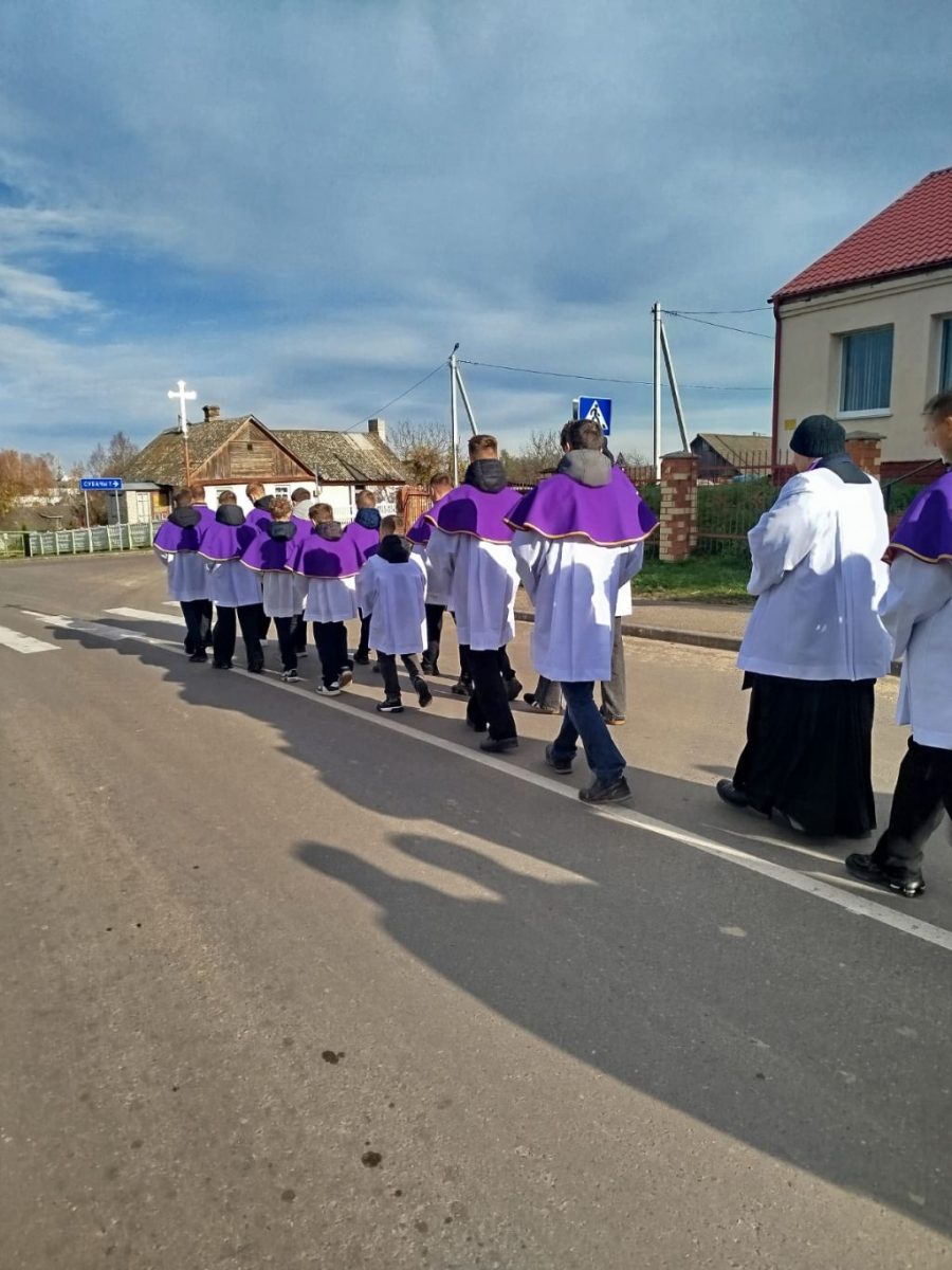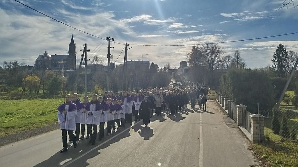 Procesión al cementerio y oración por los difuntos en Szydłowice, Bielorrusia, 1 de noviembre