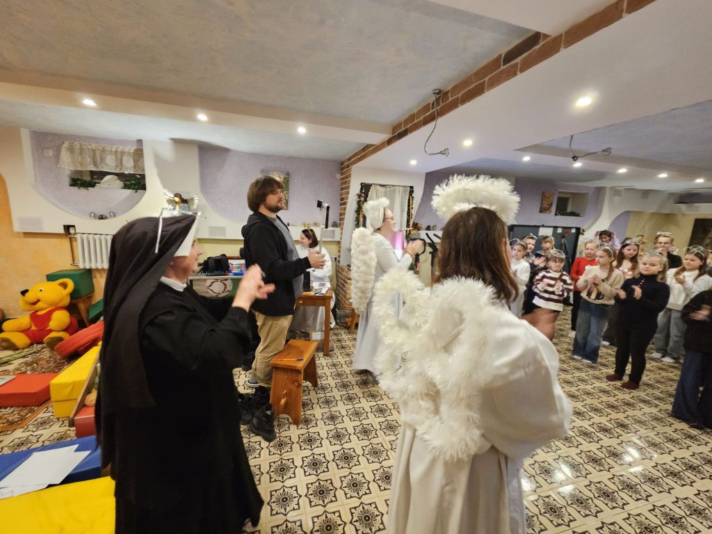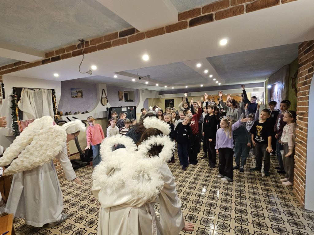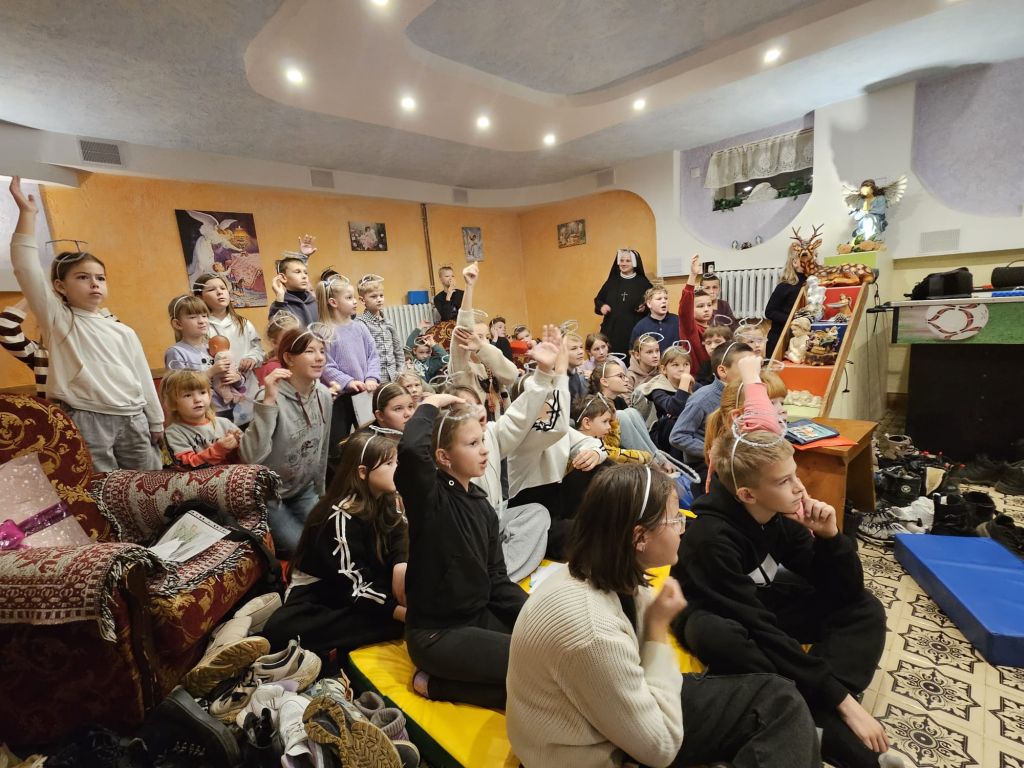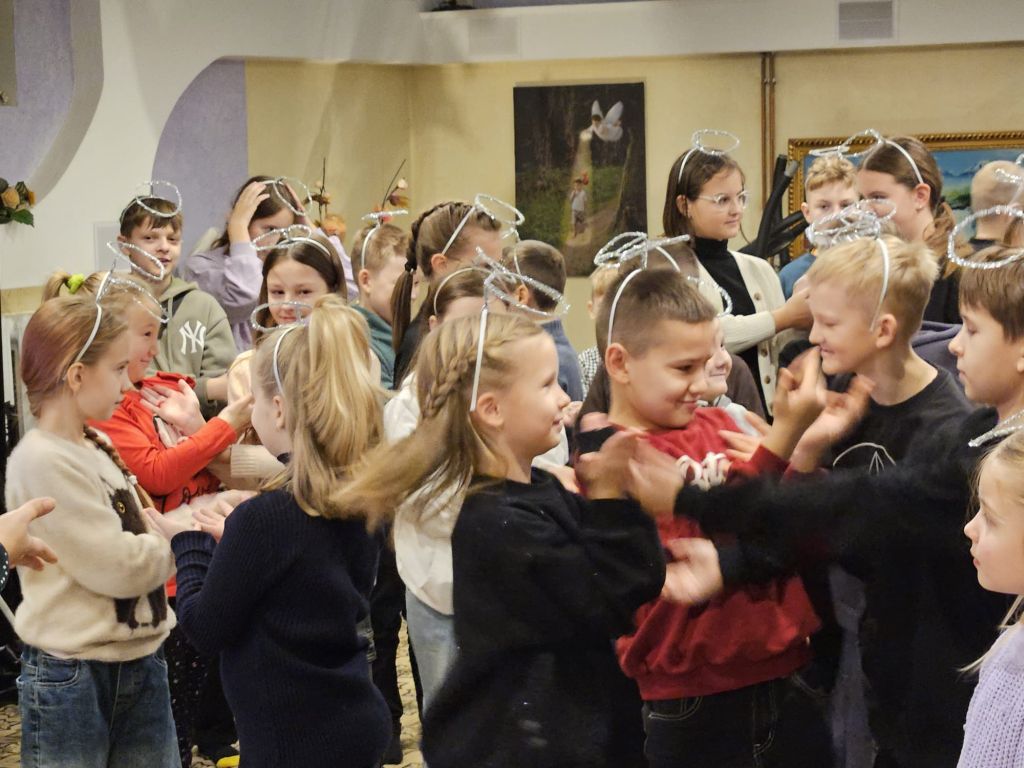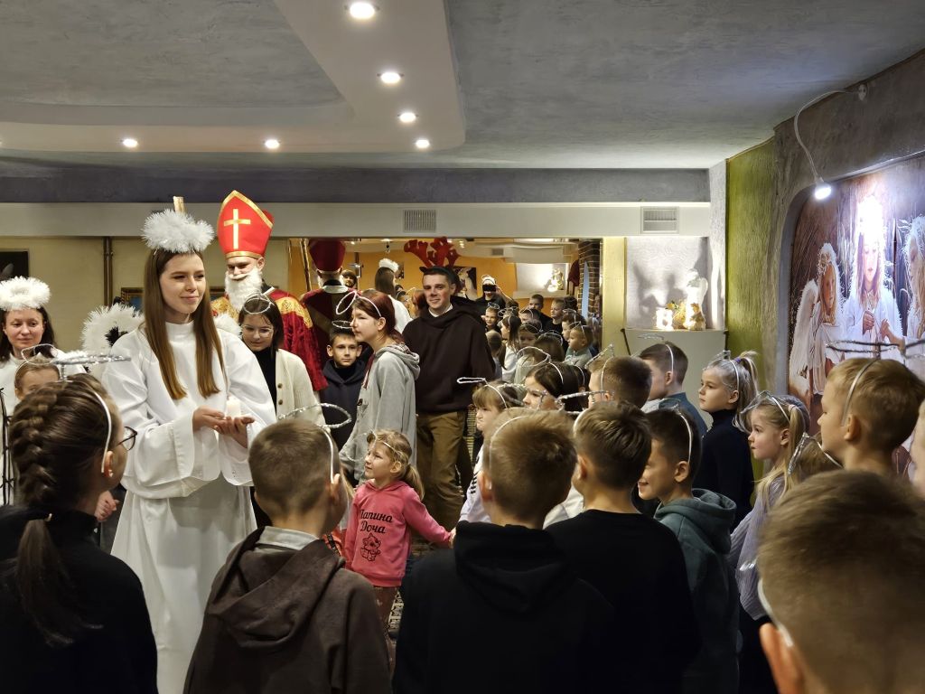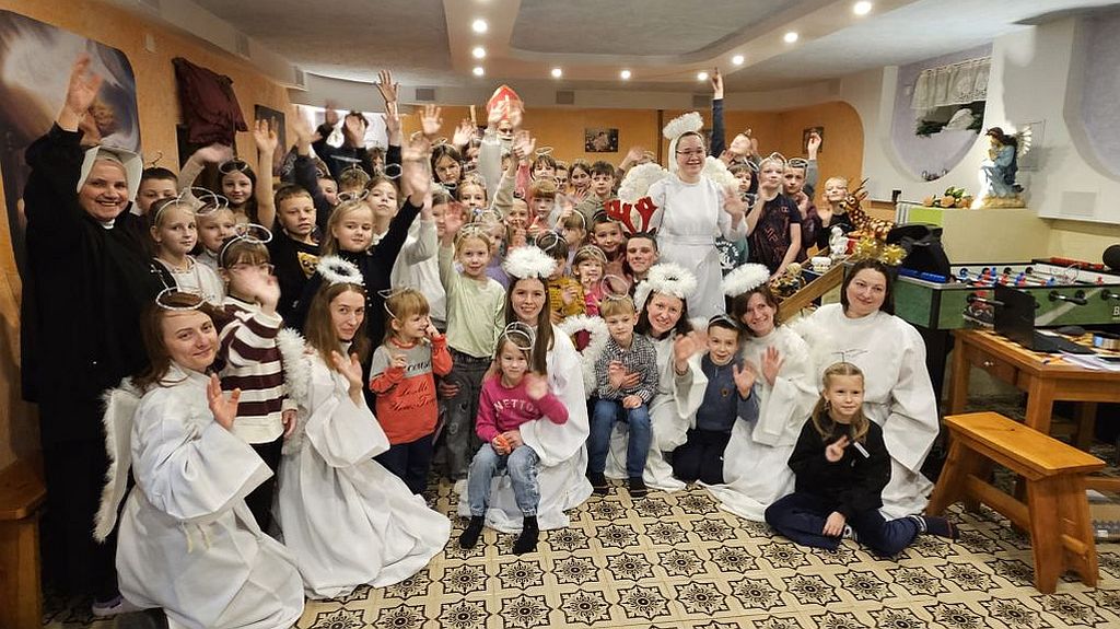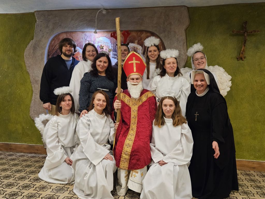 San Nicolás en la sala de actividades para niños en Szydłowicze, Bielorrusia, 6 de diciembre de 2025