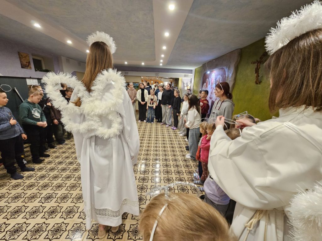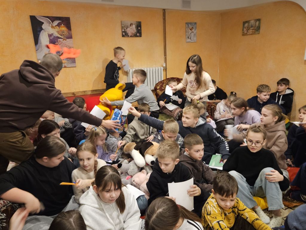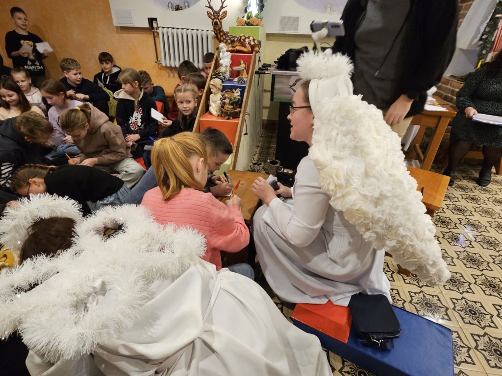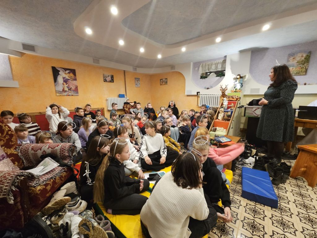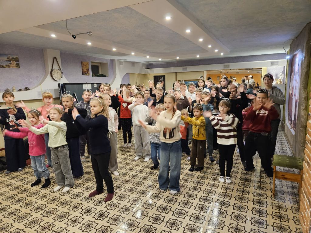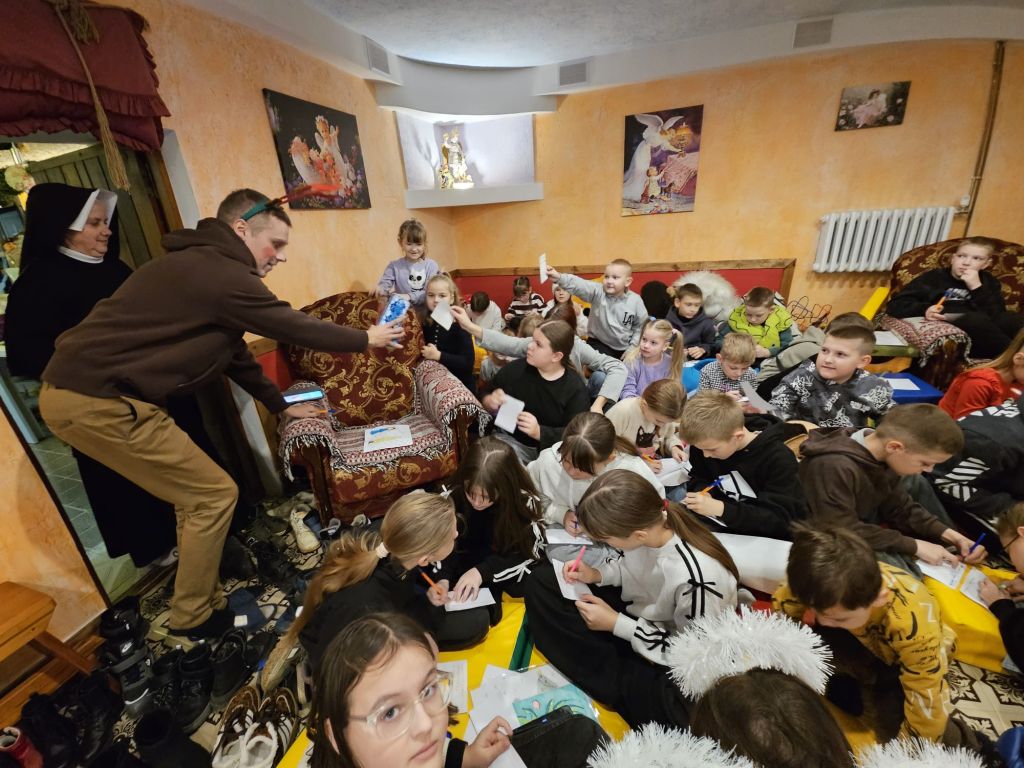 San Nicolás en la sala de actividades para niños en Szydłowicze, Bielorrusia, 6 de diciembre de 2025