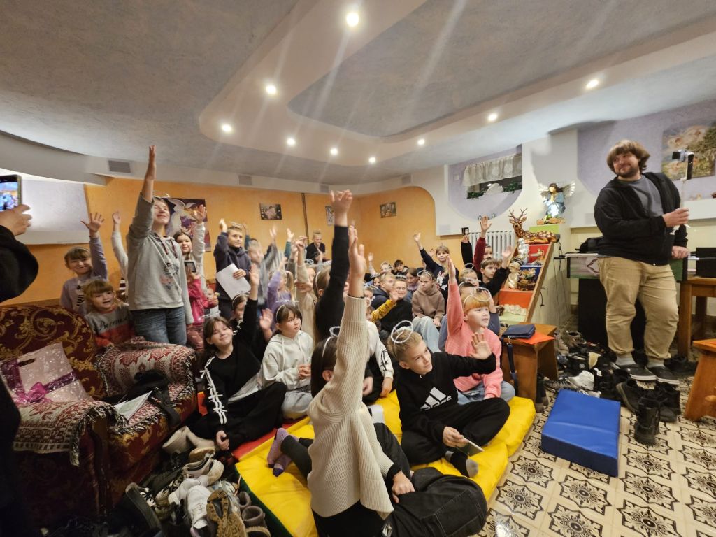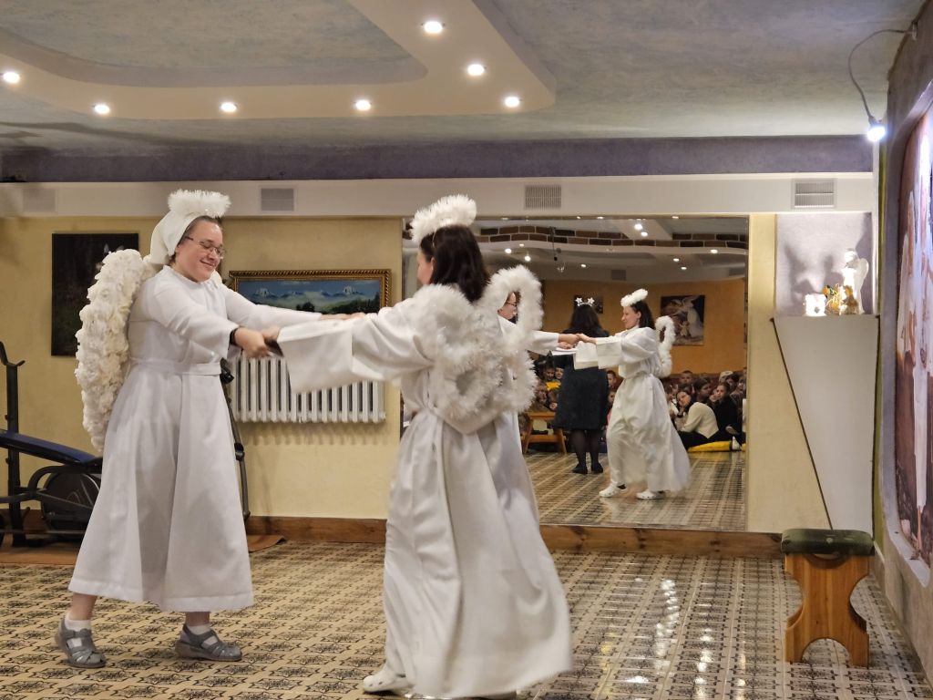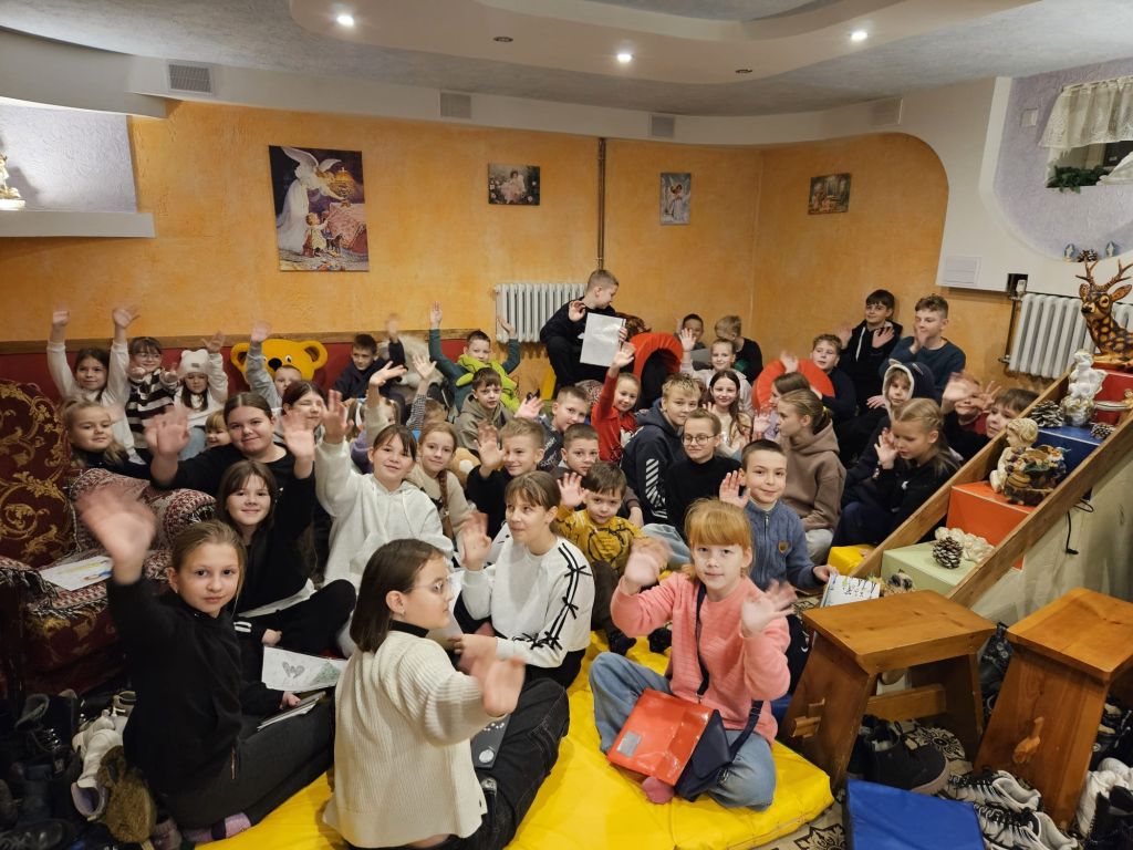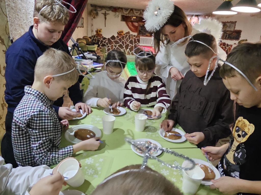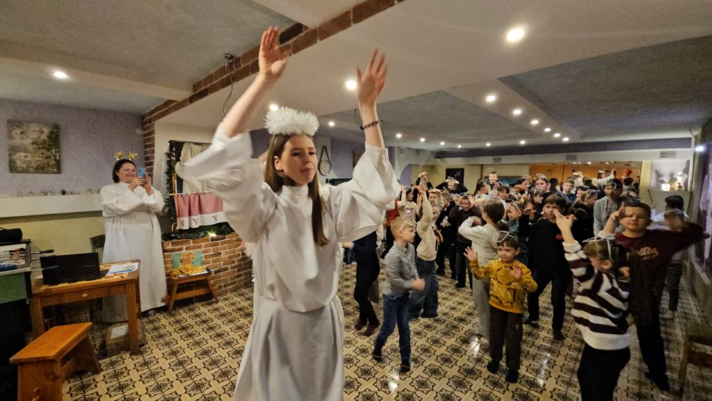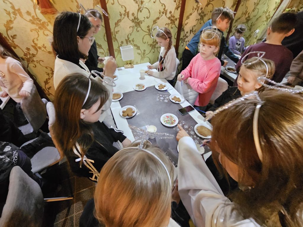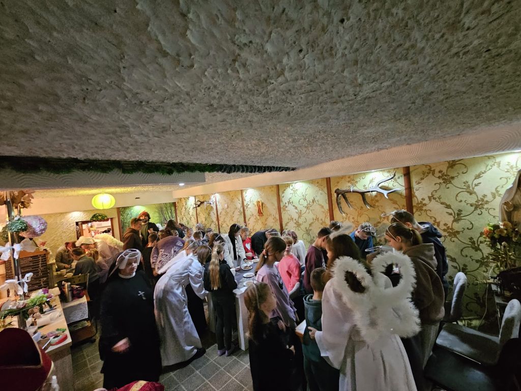 San Nicolás en la sala de actividades para niños en Szydłowicze, Bielorrusia, 6 de diciembre de 2025